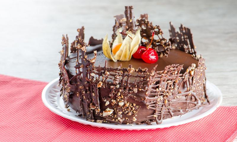 • Cobertura: Ganache de chocolate e arabesco de chocolate.